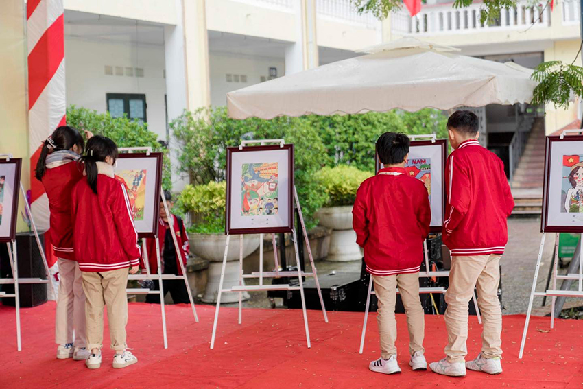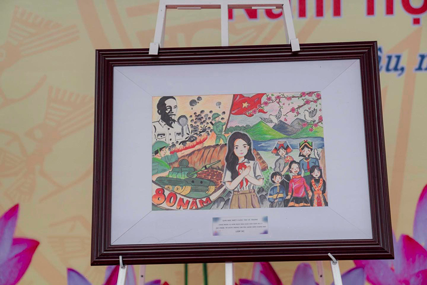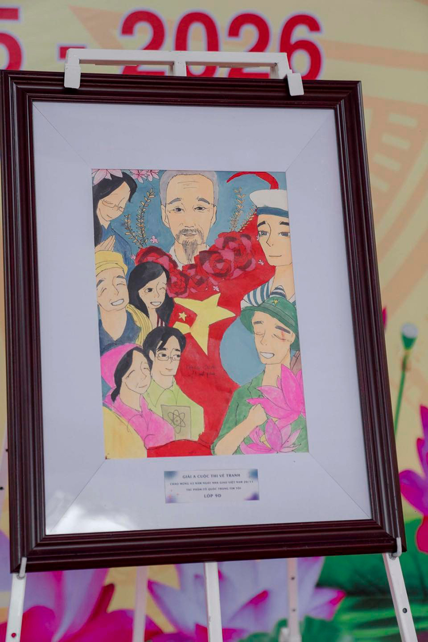 Sân chơi năm nay như được phủ đầy bởi sắc màu cảm xúc. Mỗi lớp, mỗi nhóm học sinh đều mang đến một câu chuyện thật đẹp qua tranh vẽ – khi là hình ảnh thầy cô lặng lẽ gieo mầm tri thức, khi là hình ảnh Tổ quốc thiêng liêng trong trái tim tuổi trẻ.