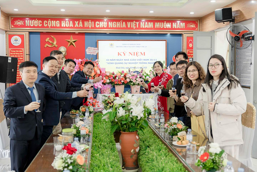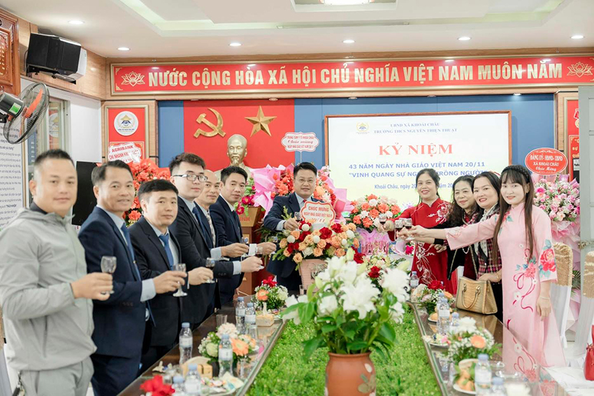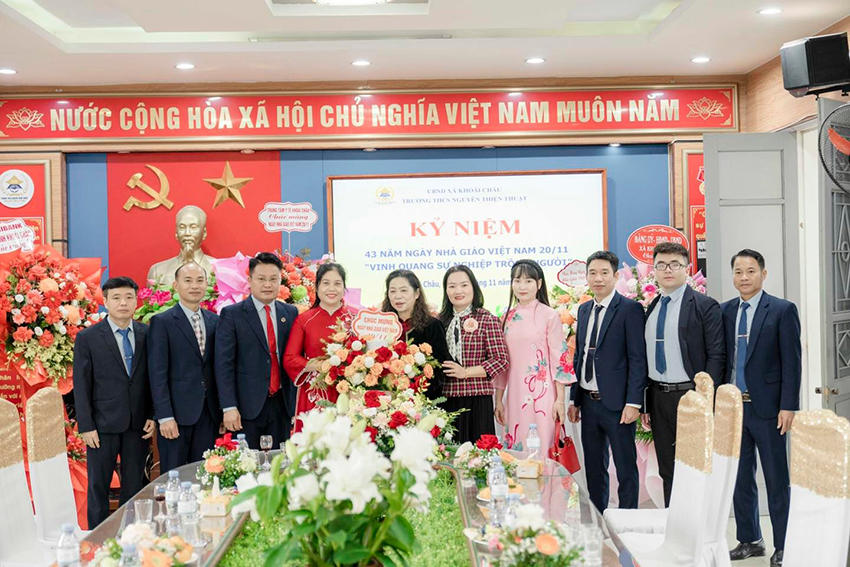 Từ trường THPT Khoái Châu, trường THPT Nguyễn Siêu, trường THCS Thị Trấn Khoái Châu, trường Tiểu học An Vĩ, Trung tâm Giáo dục thường xuyên, đến đại diện VNPT Khoái Châu, ngân hàng Agribank và trung tâm Y tế Khoái Châu, mỗi đoàn khách đến đều mang theo sự quan tâm, tình cảm và tinh thần gắn kết đáng quý. Những lời chúc, những nụ cười thân thiện như những nhịp cầu bền vững, kết nối các đơn vị với mái trường Nguyễn Thiện Thuật trong tình hữu nghị sâu sắc.
