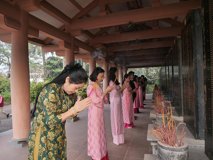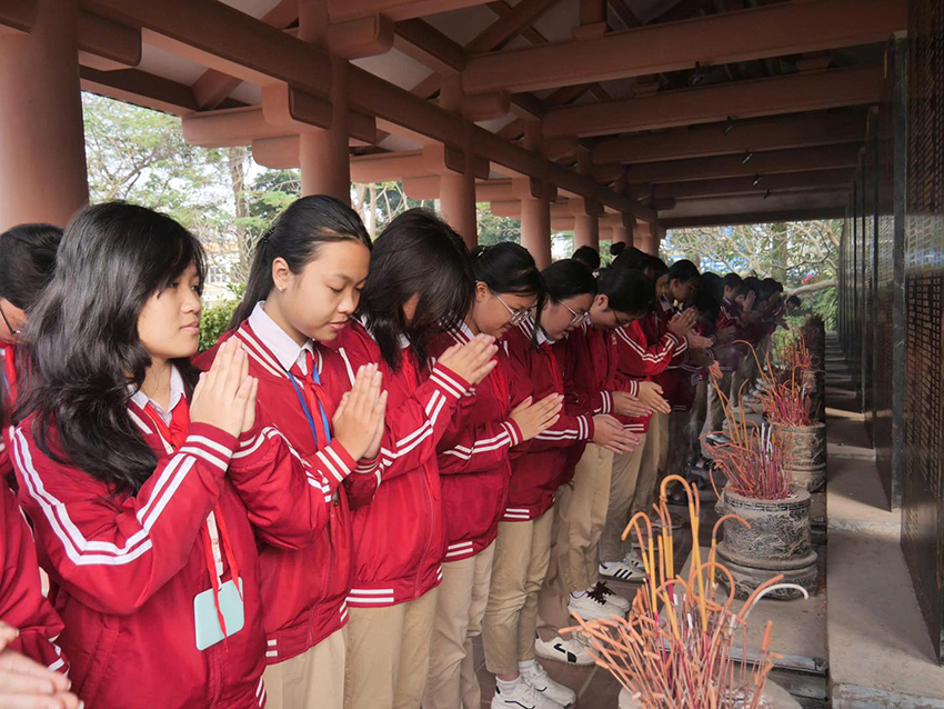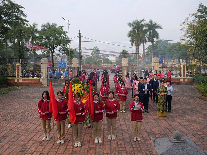 Hình ảnh thầy cô đi bên học trò, trang nghiêm trước đài tưởng niệm, không chỉ là một hoạt động giáo dục truyền thống, mà còn là bài học sống động về lòng yêu nước, đạo lý “uống nước nhớ nguồn”, được hun đúc bằng cảm xúc chân thành và sự lắng đọng của tâm hồn.