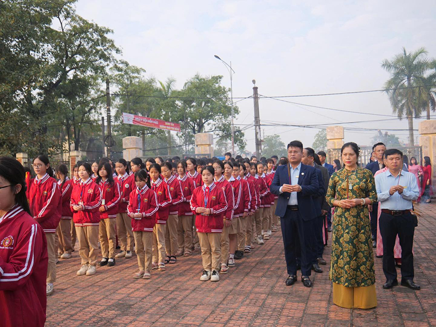 Trong làn khói hương trầm mặc, thầy cô và các em học sinh nghiêm trang tưởng niệm, cúi đầu tri ân những người con ưu tú của quê hương đã anh dũng hy sinh vì độc lập, tự do của Tổ quốc. Mỗi nén hương được thắp lên là một lời nhắc nhở sâu sắc về giá trị của hòa bình, về trách nhiệm của thế hệ hôm nay trong việc gìn giữ và tiếp nối truyền thống cha anh.