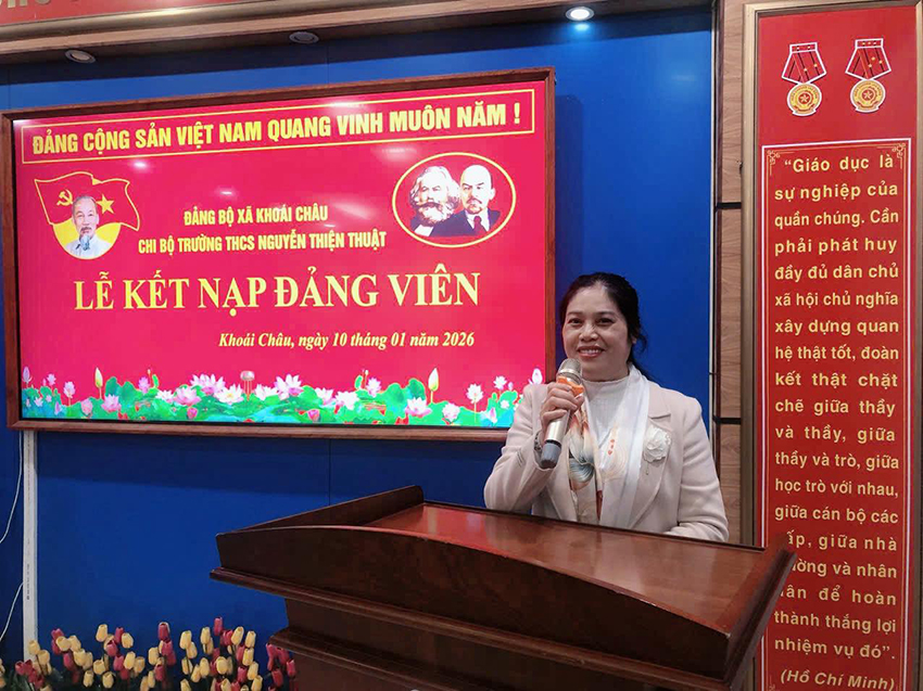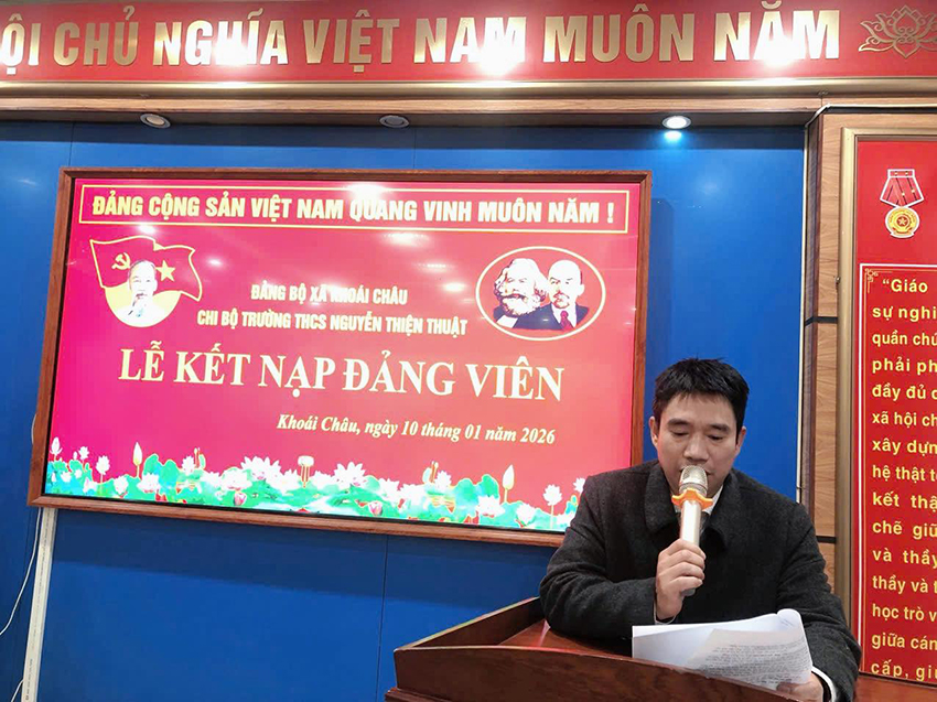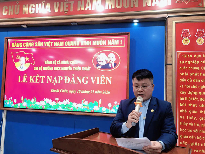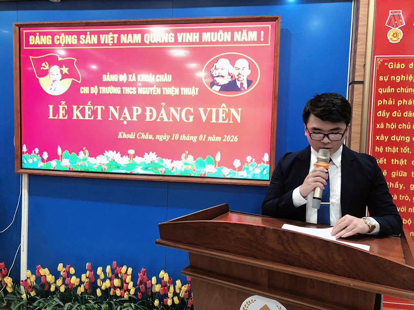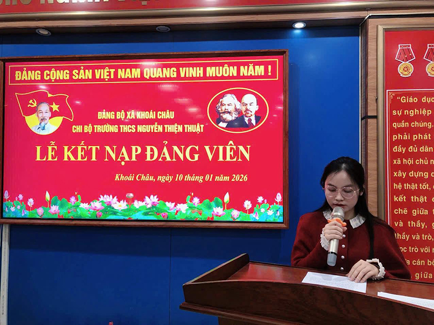 Ngày 10/01/2026, Chi bộ Trường THCS Nguyễn Thiện Thuật đã tổ chức Lễ kết nạp Đảng viên cho hai quần chúng ưu tú: Đinh Khánh Nam và Lê Thị Hà Phương.