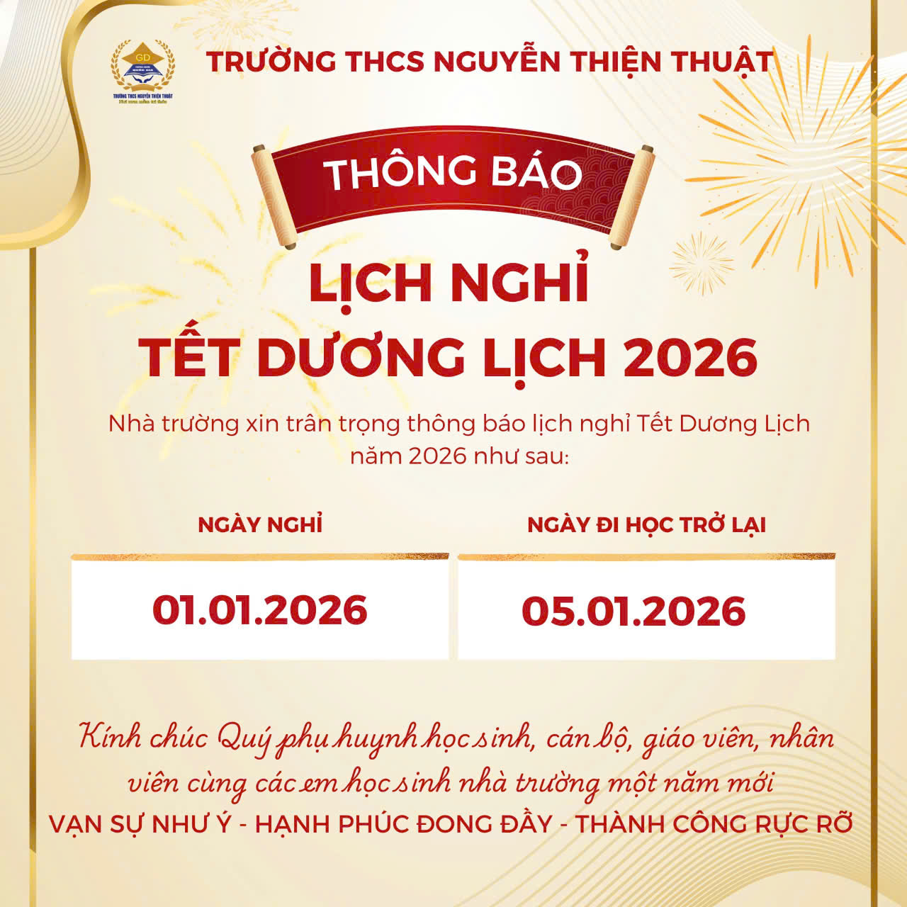 " Thông báo lịch nghỉ Tết Dương lịch "