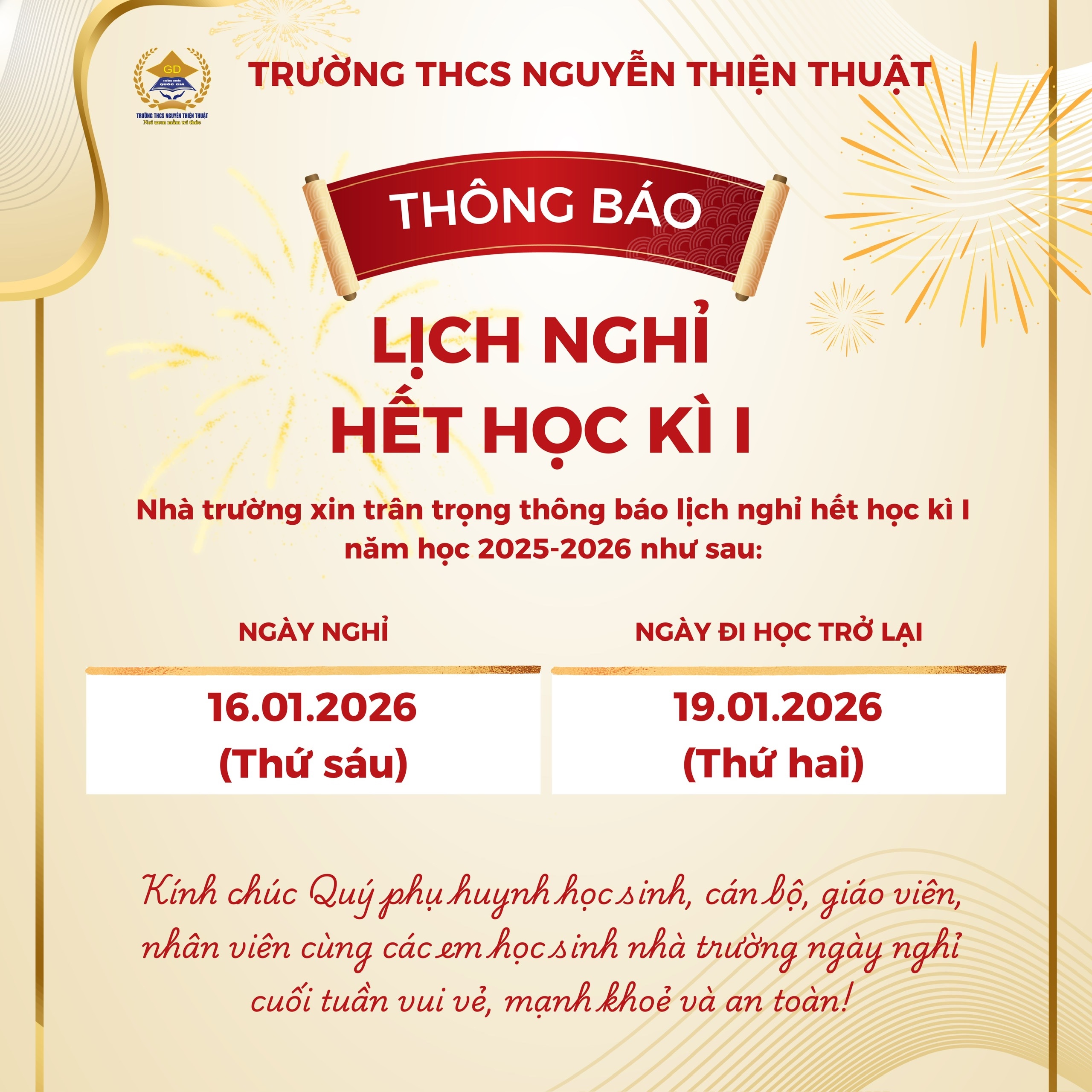 " Thông báo nghỉ học kỳ "